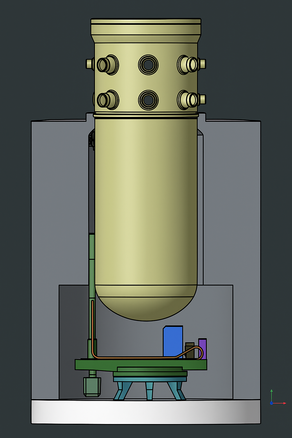 Due to the spatial constraints of the laser operation, LASCAM systems and Elya solutions designed a unique laser process head that, thanks to its geometry, could fit precisely into the narrow space between the reactor vessel and the containment structure.